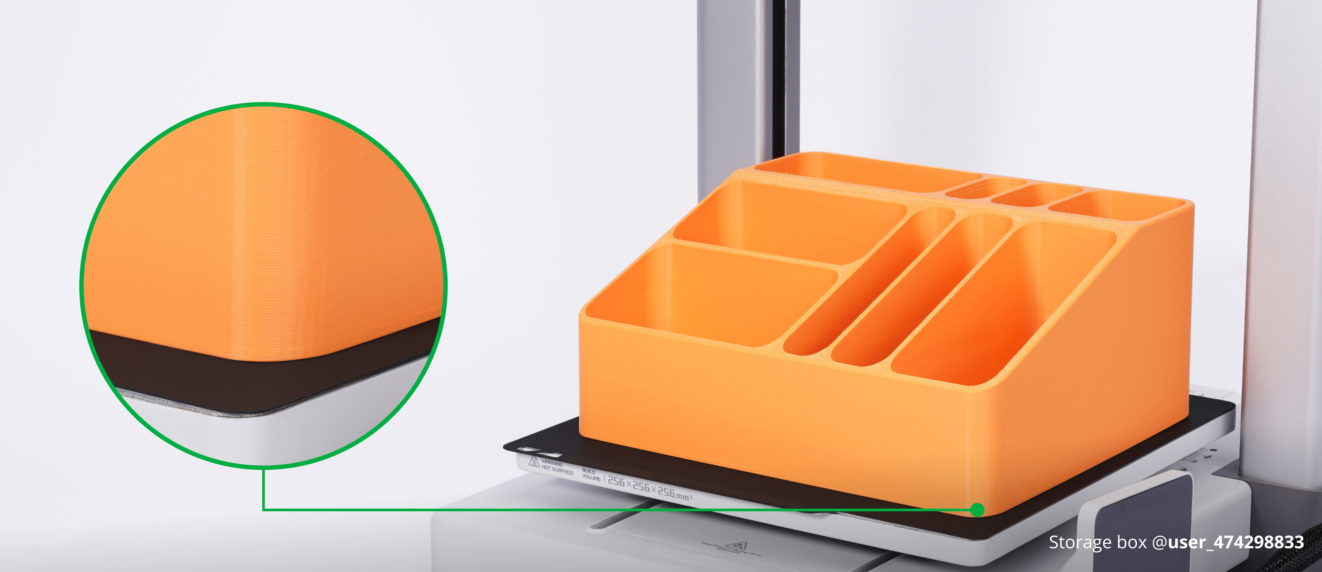 Hladký a matný povrch Rovnako ako iné hladké pláty, aj SuperTack Pro zanecháva na spodnej strane modelu hladkú a matnú textúru. Tá pomáha minimalizovať viditeľnosť vrstiev a zaisťuje, že spodná strana výtlačku lepšie splynie s ostatnými plochami modelu.