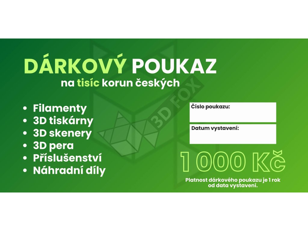 Elektronický darčekový poukaz je ideálny darček pre Vašich blízkych, kamarátov alebo kolegov v práci, ktorí sú rovnako ako my nadšenci do 3Dtlače. Všetko vyriešite v priebehu niekoľkých minút a obdarovaný si môže počas nasledujúceho roka vybrať akékoľvek produkty z našej širokej ponuky a uplatniť zľavu podľa výšky darčekového poukazu.