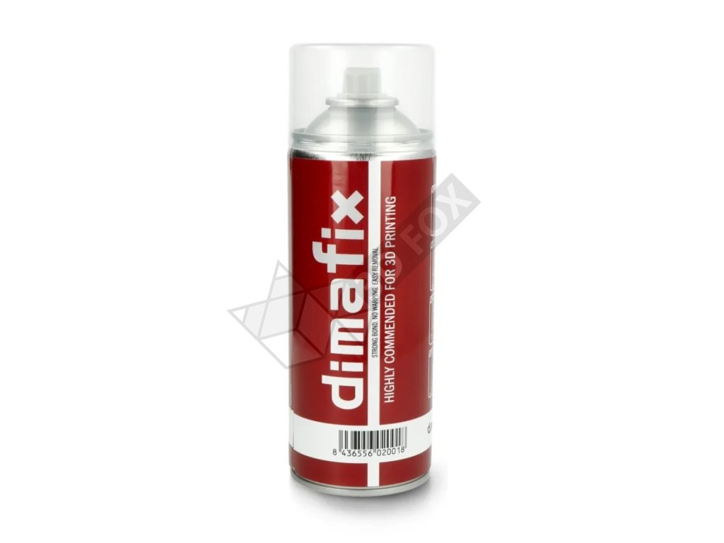 Dimafix sprej je aerosólové lepidlo určené pre 3D tlačiarne s vyhrievanou podložkou. Tento sprej zaisťuje silnú priľnavosť medzi prvou vrstvou a tlačovou plochou, čo zabraňuje deformáciám aj pri veľkých objektoch. Pri teplote podložky nad 60 °C poskytuje Dimafix vynikajúcu priľnavosť, zatiaľ čo pri teplote pod 60 °C umožňuje ľahké odstránenie výtlačkov. Dimafix je úplne rozpustný vo vode, čo uľahčuje čistenie tlačovej plochy.