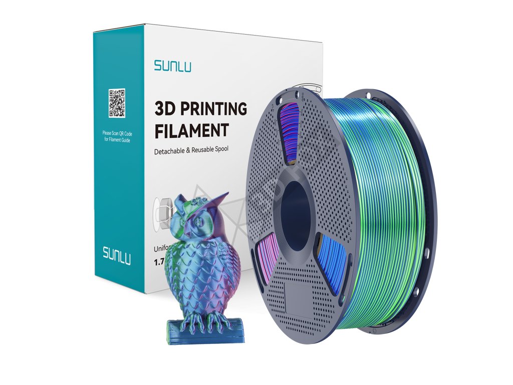 Tento PLA materiál zvýrazňuje jemné detaily Vašej 3D tlače svojim hodvábnym leskom a vytvára úchvatné efekty prelínaním troch farieb. Farebné tóny meniace sa o 360 ° dodajú výtvorom kúzelný vzhľad!