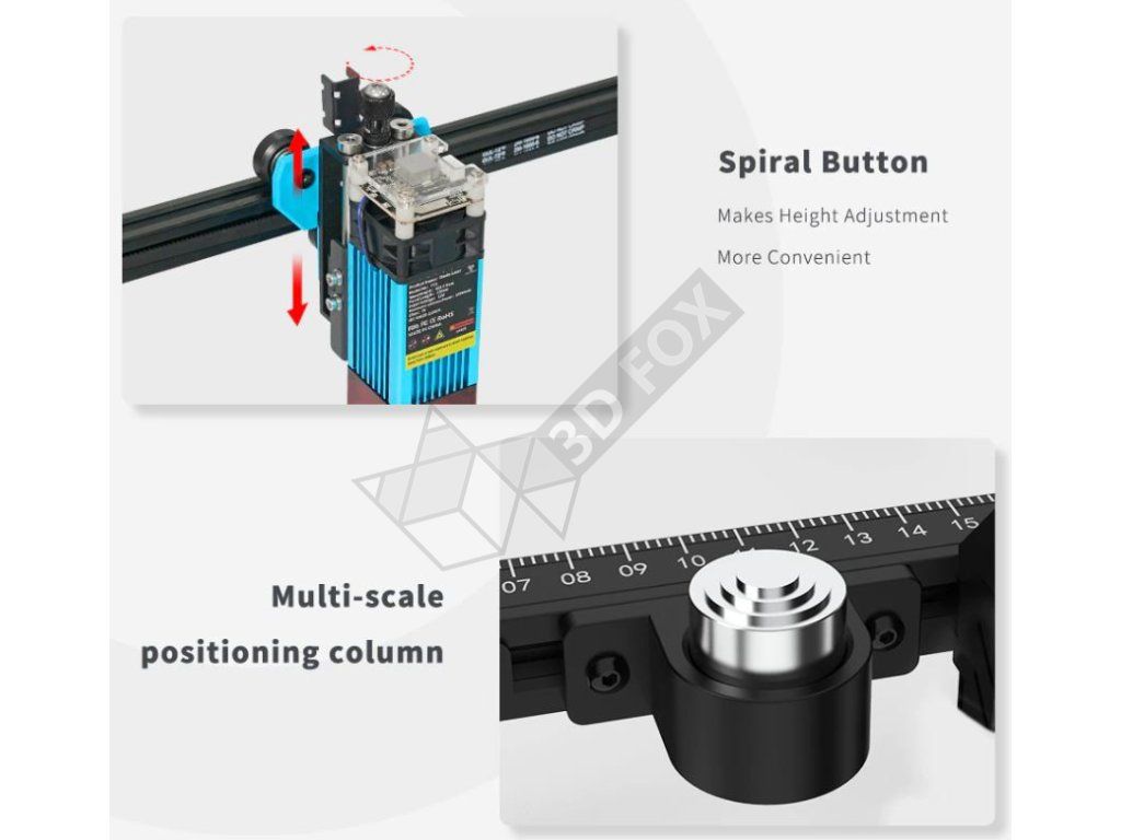 Konštrukcia pre jednoduchú montáž: Konštrukcia z hliníkových profilov, dvojité motory osi Y umožňujú stabilnejšiu prácu stroja a zlepšujú presnosť gravírovania. Predmontovaných 60 %, montáž je možné dokončiť v priebehu 30 minút.