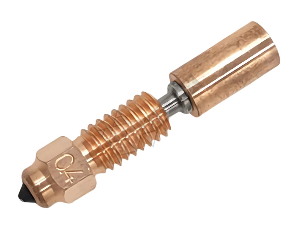 Tryska je vyrobená z troch rôznych materiálov - Zliatina medi pre lepší prenos tepla, titánová zliatina na zbrzdenie teplotného prenosu do chladiča, kalená špička trysky pre vyššiu životnosť.